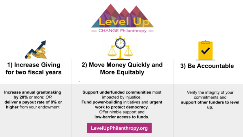 We are proud to endorse the Level Up pledge — a two-year minimum commitment to increase giving, move money quickly and equitably, and share the data that proves it. Frontline communities deserve more than episodic funding. They deserve sustained investment that builds the power of those most impacted by injustice and works toward a more inclusive democracy and equitable economy.